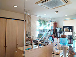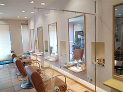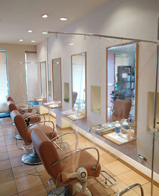 施術中のお客様にはマスクの着用をお願いしているのですが、お隣で他のお客様が気にならぬようにパーテーションを2か所設置しております。基本的にはお席の間隔を空けて施術させていただいております。 受付も対面になる為に設置しキャッシュレス決済【QUIC Pay,Suica, Pay Pay 】など電子マネーの使用も可能です。