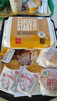 ほどよく歩いたので、セミの大合唱を聴きながらひき返しましょう。 有名なレストランはまだ空いていない。 渓谷から抜け出し、環八を歩き始めるころには気温は31℃を超えはじめる。 あまりのギャップとアスファルトの熱に、一同だまる。。。。。無言。。。 あのМの文字が見えてくるまでは。。。 『いただきま~す』